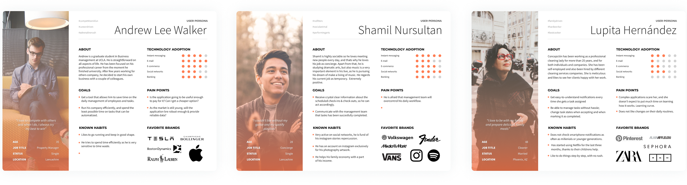 Having these profiles defined, helped us understand which information was relevant for every persona that would use the platform & make dedicated section access setup.